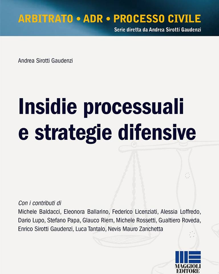 - Michele Baldacci - Eleonora Ballarino - Federico Licenziati - Alessia Loffredo - Dario Lupo - Stefano Papa - Glauco Riem - Michele Rossetti - Gualtiero Roveda - Enrico Sirotti Gaudenzi - Luca Tantalo - Nevis Mauro Zanchetta - serie diretta da Andrea Sirotti Gaudenzi, Insidie processuali e strategie difensive, Maggioli Editore di Rimini, maggio 2018.
