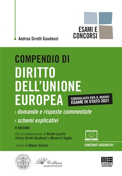 - Autore di parti dell'opera "Compendio di diritto dell'Unione Europea", coi preziosi contributi di altri autori, Maggioli Editore di Rimini, luglio 2021 (ISBN 978-88-916-5147-1).